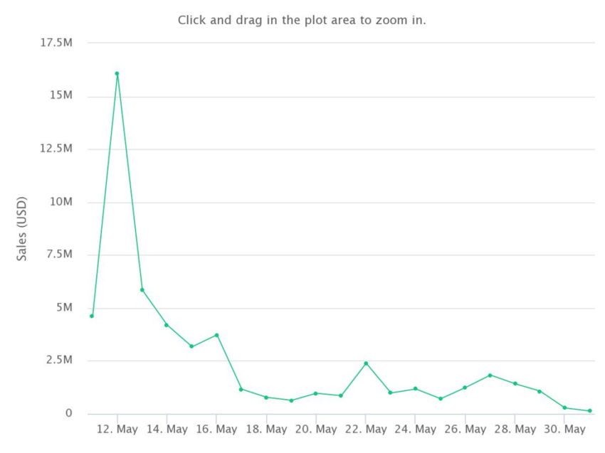 Nhìn vào sự gia tăng đột biến về số lượng người mua trong tháng 5 năm 2021, việc gia tăng khối lượng bán hàng đã dẫn đến số lượng các giao dịch tăng vọt trên nền tảng, với 4,477 người mua và 9,161 giao dịch. Tính đến cuối tháng này, doanh số bán hàng của VeeFriends là có thể đạt được xấp xỉ 53.21 triệu USD.
