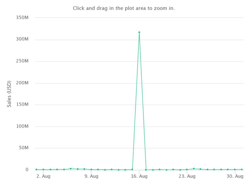 VeeFriends đã đạt được doanh thu hàng tháng khoảng 343.83 triệu USD vào tháng 8 năm 2021 cao nhất mọi thời đại và trong khu vực. Mặc dù số lượng người mua trong tháng 5 vừa qua đạt được khoảng 477 người, giảm 89% so với mức cao nhất vào thời điểm này năm ngoái, nhưng giá trị bán hàng trung bình đạt được vẫn tương đối cao. Giá trị bán hàng trung bình của VeeFriends được khoảng 434,673.29 USD trong tháng 8, tăng 7,384.24% so với mức giá 5,807.85 USD của tháng 5.