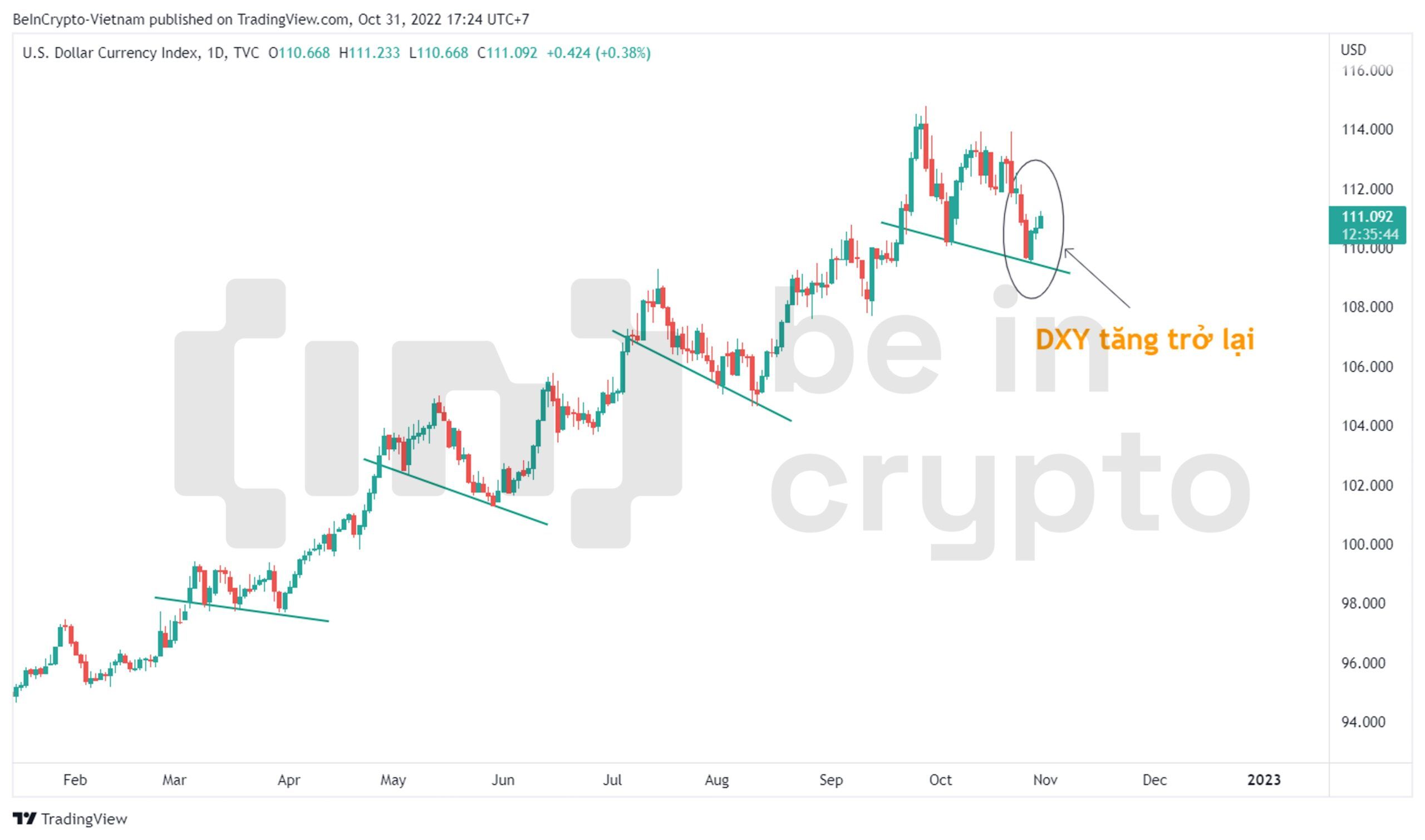 DXY có dấu hiệu tăng trở lại, tích hơn bitcoin