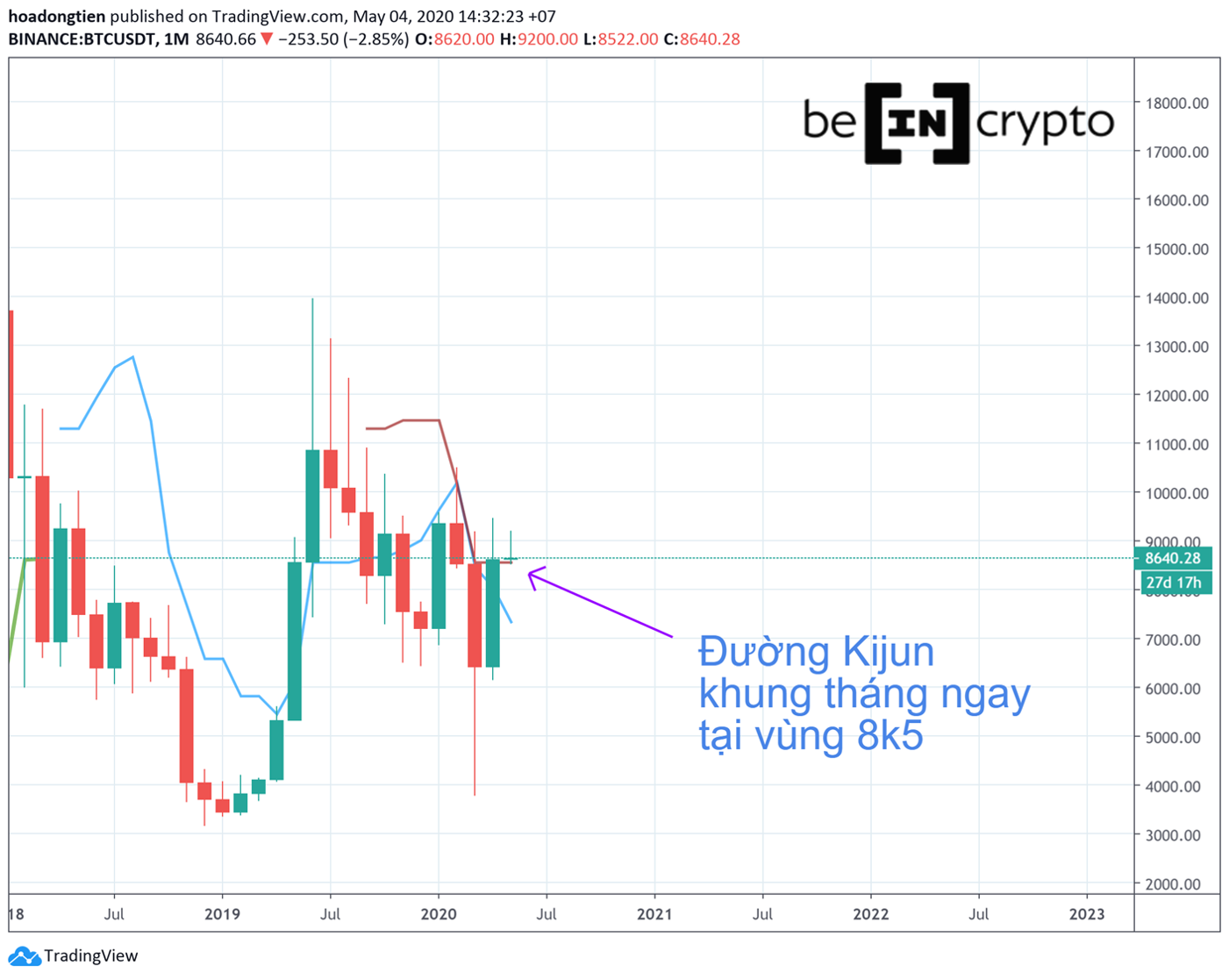 Đường Kijun được tính bằng mức trung bình của 26 tháng, rõ ràng là một hỗ trợ rất cứng cho Bitcoin.