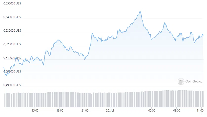 Mã thông báo ADA gốc của Cardano đã tăng đáng kể trong tuần qua, tăng 25% trong 7 ngày qua. Vào thời điểm viết bài, ADA đang giao dịch ở mức 0.528 USD, tăng 5.4% trong 24 giờ qua, theo dữ liệu từ CoinGecko.