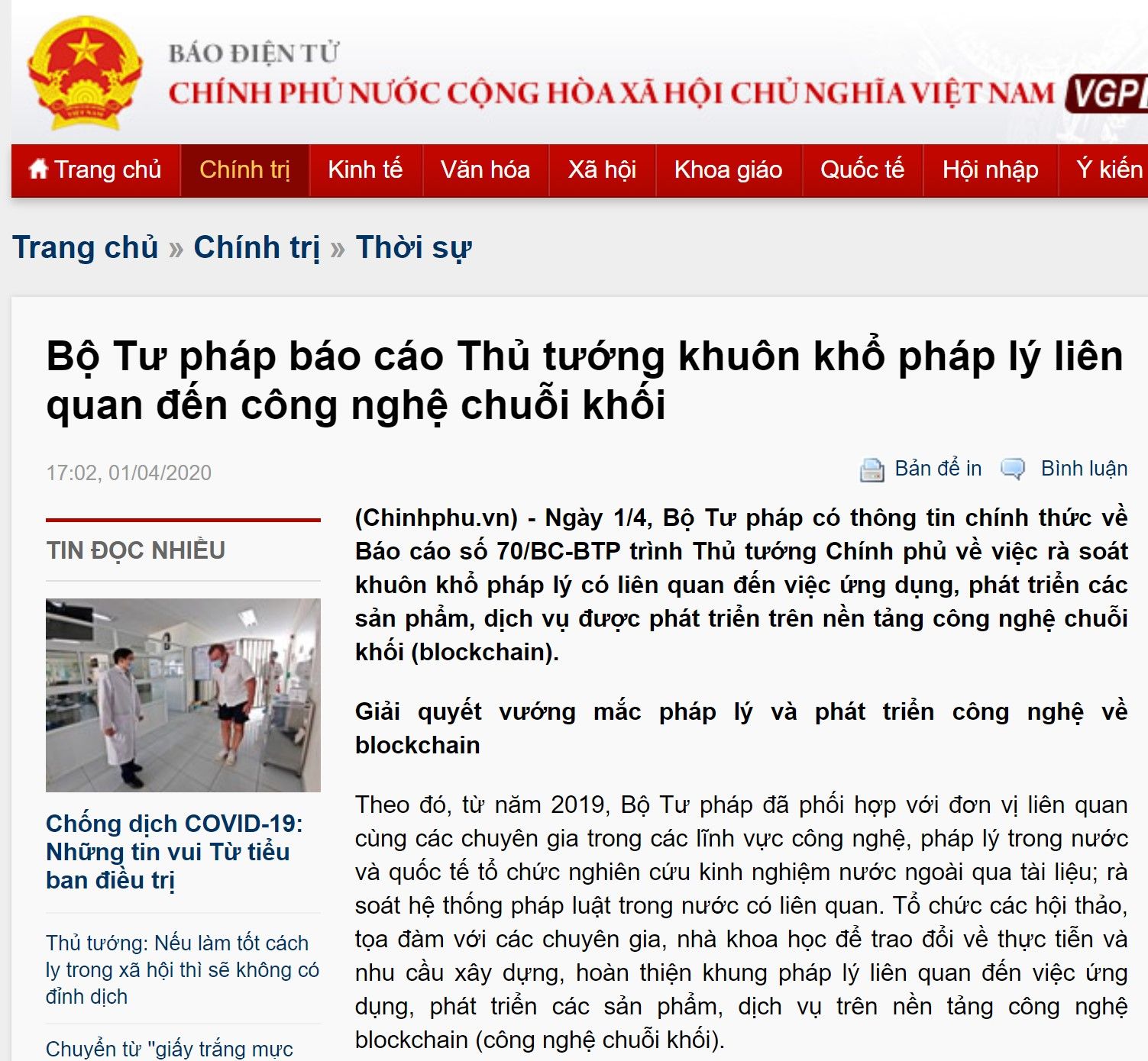 Giữa những mối lo ngại không ngừng gia tăng về đại dịch COVID-19, chính phủ Việt Nam vẫn bày tỏ sự quan tâm đến phát triển công nghệ Blockchain trong năm 2020. Bộ Tư Pháp đã có báo cáo và kiến nghị lên thủ tướng chính phủ về những kế hoạch mới để phát triển Blockchain ở Việt Nam.