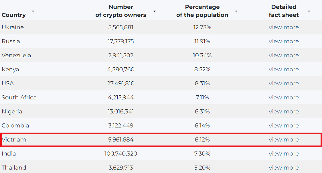 Chính phủ sau đó đã thành lập một nhóm nghiên cứu tiền điện tử vào năm 2020, có nhiệm vụ nghiên cứu các diễn biến khác nhau trên thị trường tài sản ảo và đưa ra các đề xuất chính sách pháp lý. Mặc dù thiếu khung pháp lý nhưng theo dữ liệu thống kê bởi Triple-A, nước chúng ta có khoảng 6.12% dân số sở hữu tiền điện tử (xếp hạng thứ 9 toàn cầu). Với việc một lượng lớn người dân tham gia vào thị trường này, cộng thêm việc có ngày càng nhiều các vụ lừa đảo liên quan đến tiền điện tử đã bị cơ quan chức năng vạch trần trong thời gian gần đây, có thể là những nguyên nhân chính dẫn đến việc xây dựng khung pháp lý cho lĩnh vực này.