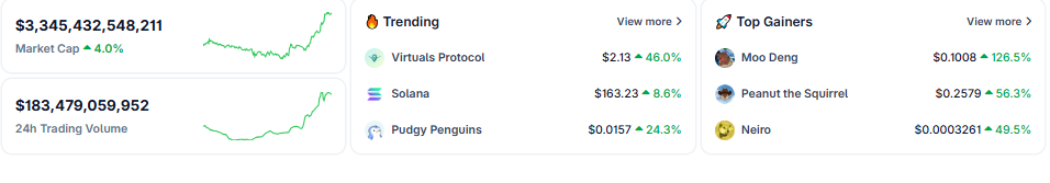 Virtuals Protocol (VIRTUAL) là token đang được chú ý trên CoinGecko, sau khi ghi nhận mức tăng đáng kể trong ngày và trong tháng qua.