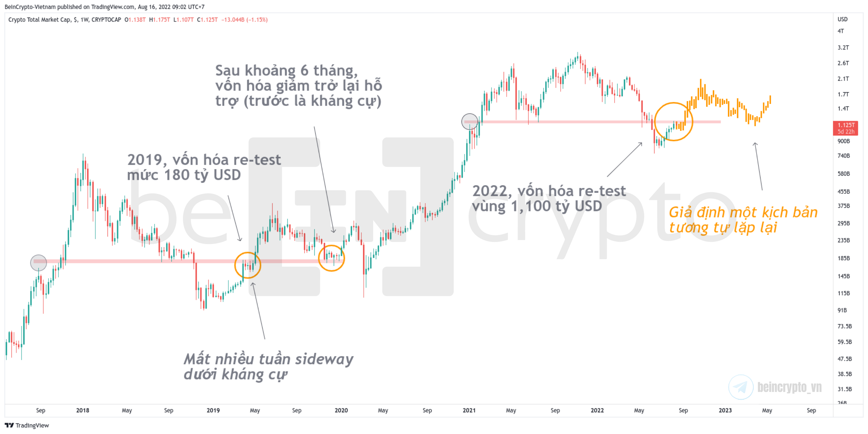 Vốn hóa thị trường Crypto vừa re-test kháng cự quan trọng