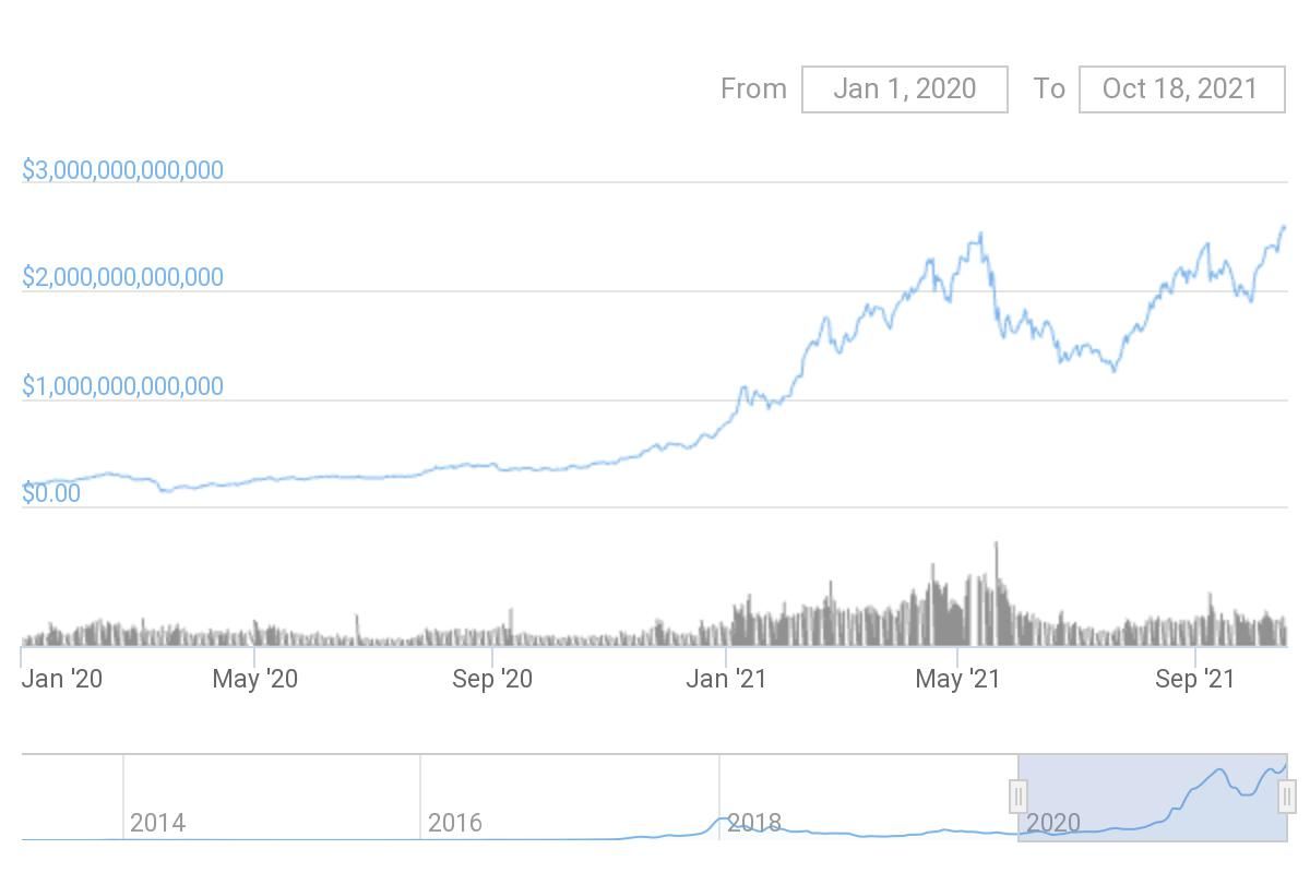 Vốn hóa thị trường tiền điện tử đã tăng 233% kể từ đầu năm nay kể từ mức 780 tỷ USD lên 2.6 tỷ USD. Vào đỉnh điểm của tháng 1 năm 2018, vốn hóa thị trường tiền điện tử lúc đó mới đạt 830 tỷ USD.