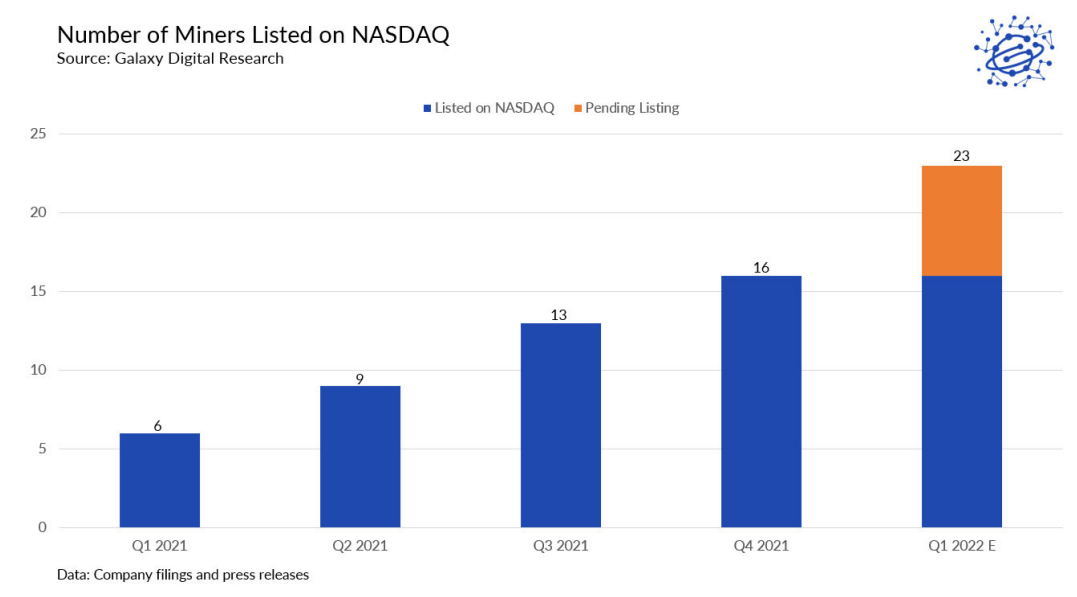 Đầu tiên phải kể đến số lượng các công ty chuyên đào Bitcoin được niêm yết trên NASDAQ. Điều này chứng tỏ phố Wall đã không còn thể thờ ơ với sức hấp dẫn của thị trường.
