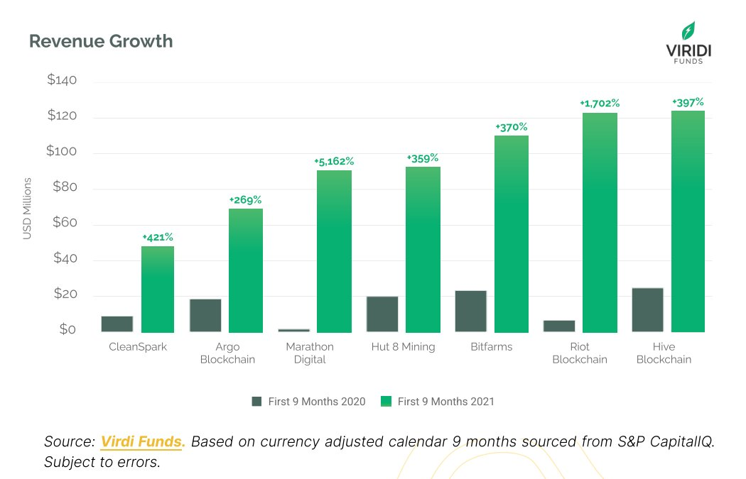 Bên cạnh đó, doanh thu của các công ty đào Bitcoin cũng có sự tăng trưởng đáng kinh ngạc.