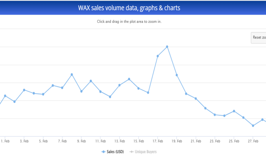 Số liệu về số lượng người mua trong một ngày và số lượng giao dịch cao nhất trong một ngày của WAX vào tháng 2 năm 2022 là 187% và nhiều hơn 98% so với tháng 2 năm 2021.