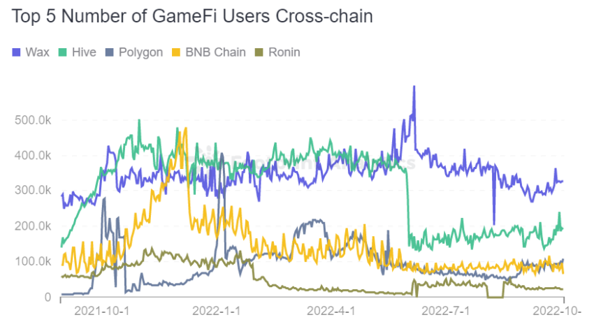 Có vẻ như, WAX và HIVE là những giao thức đang nhất thống trị không gian GameFi đồng thời ghi nhận số lượng người chơi trung bình cao hơn hẳn trên mạng của họ.
