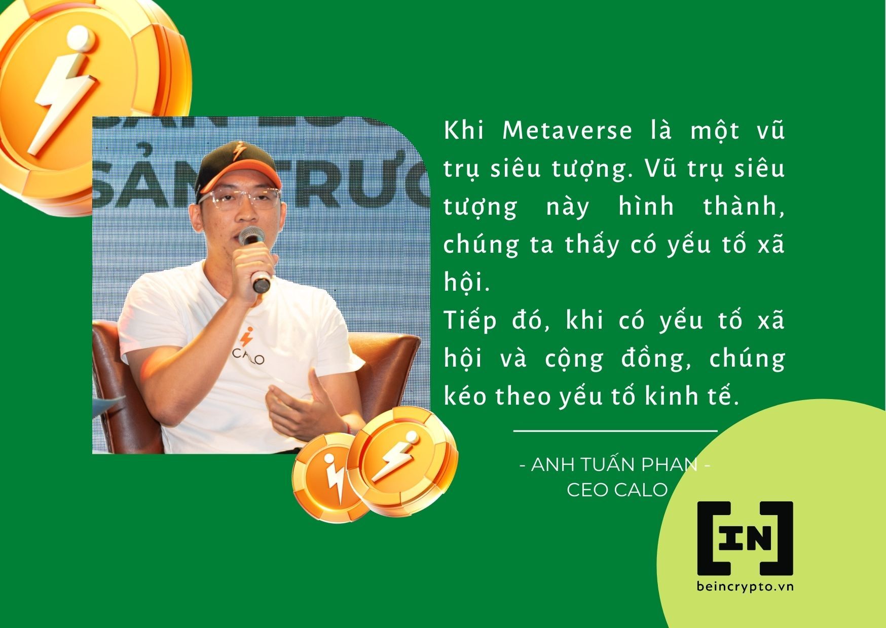 “Khi Metaverse là một vũ trụ siêu tượng. Vũ trụ siêu tượng này hình thành, chúng ta thấy có yếu tố xã hội. Tiếp đó, khi có yếu tố xã hội và cộng đồng, chúng kéo theo yếu tố kinh tế. Đồng thời, khi yếu tố kinh tế xuất hiện, chắc chắn không tránh khỏi cặp quan hệ Tiền và Hàng được phát triển trong nền kinh tế đó.”