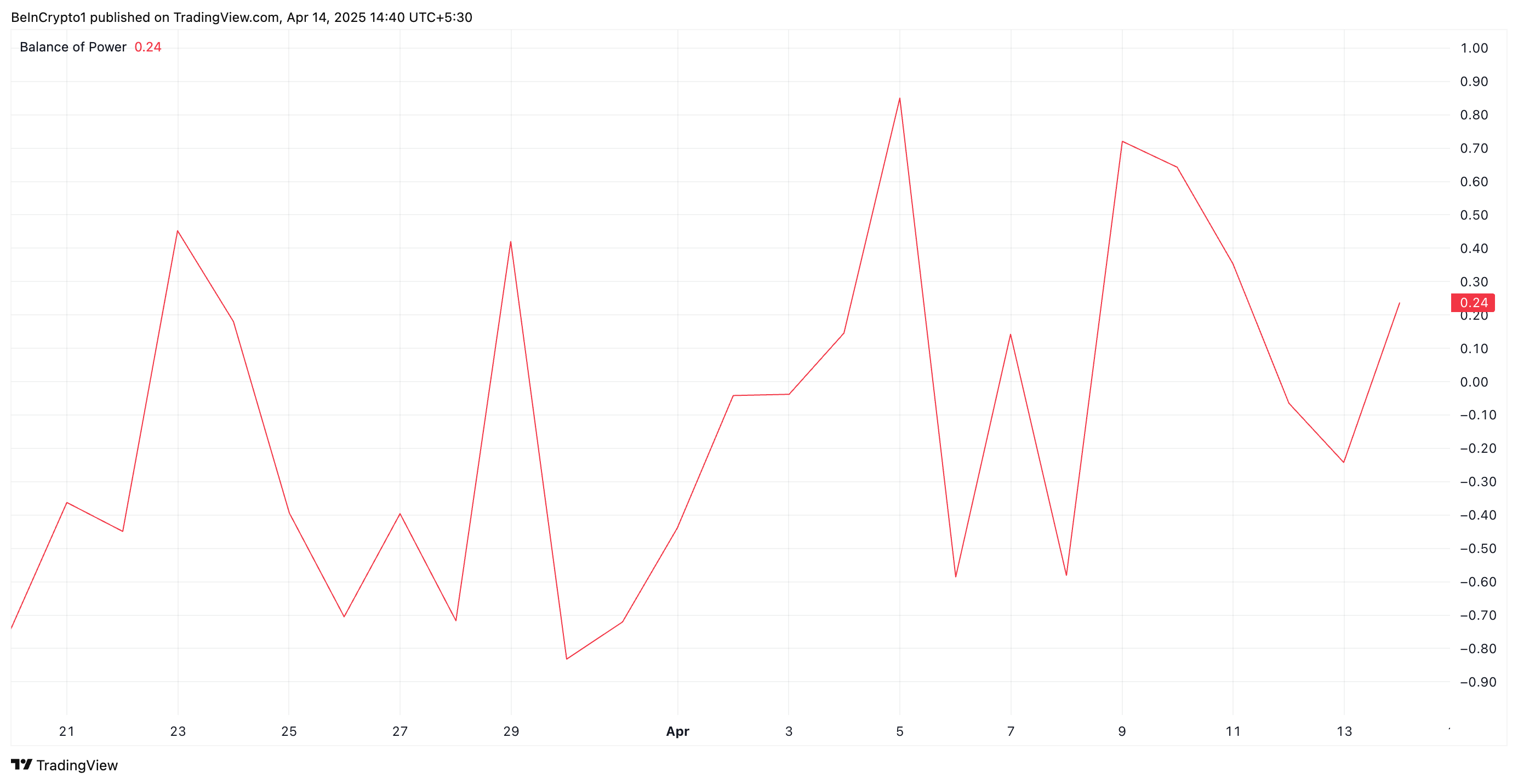 Trên biểu đồ hàng ngày, Chỉ số Cân bằng Sức mạnh (BoP) của XCN hỗ trợ cho đợt tăng giá hiện tại. Tại thời điểm viết bài, chỉ báo động lượng này, đo lường áp lực mua và bán, đang ở trên mức 0 tại 0.24.