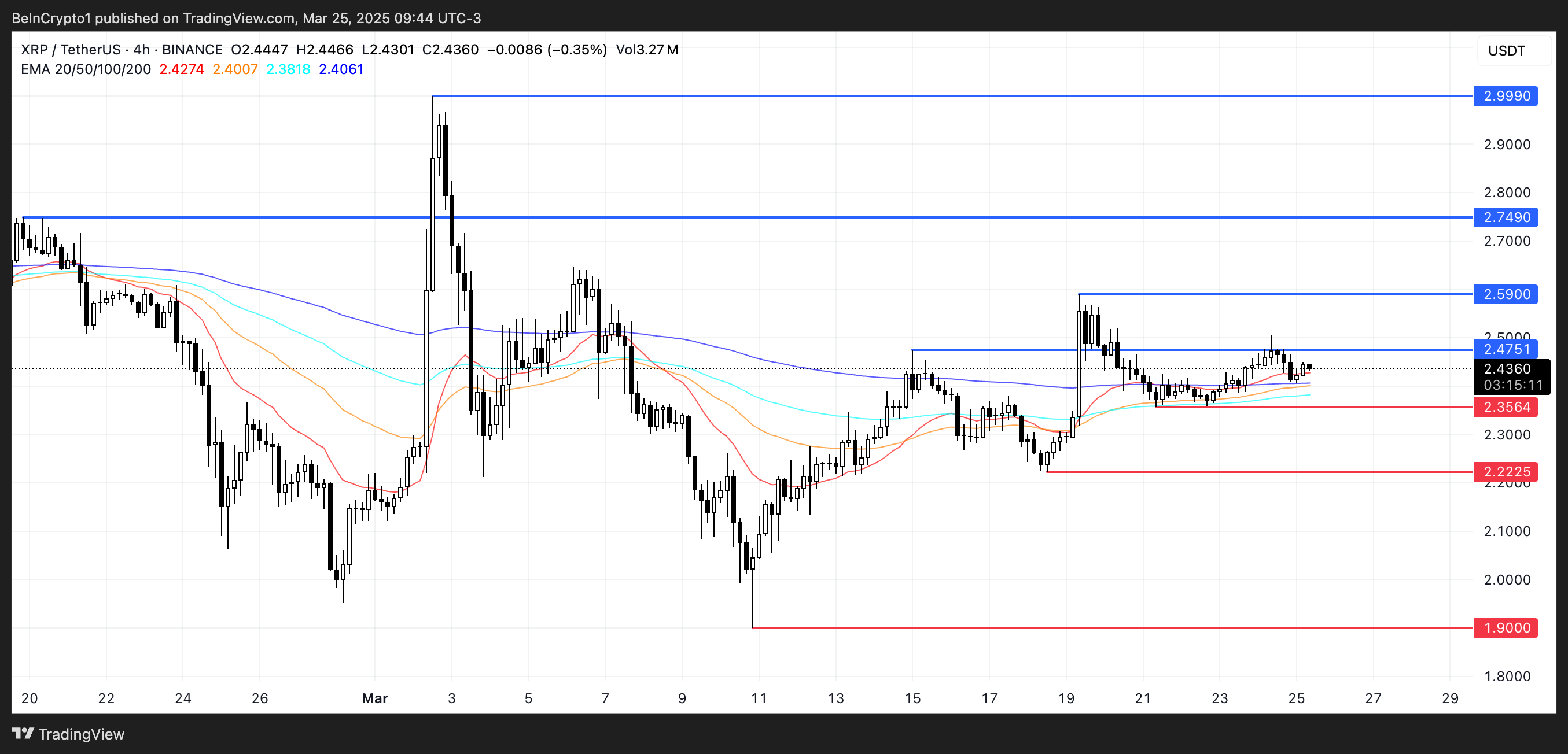 Quan trọng là, XRP chưa đạt đến mức RSI trên 70—thường liên quan đến điều kiện quá mua và tăng giá mạnh—kể từ ngày 19/03, hơn một tuần trước, cho thấy sự thiếu áp lực mua mạnh trong giai đoạn này.