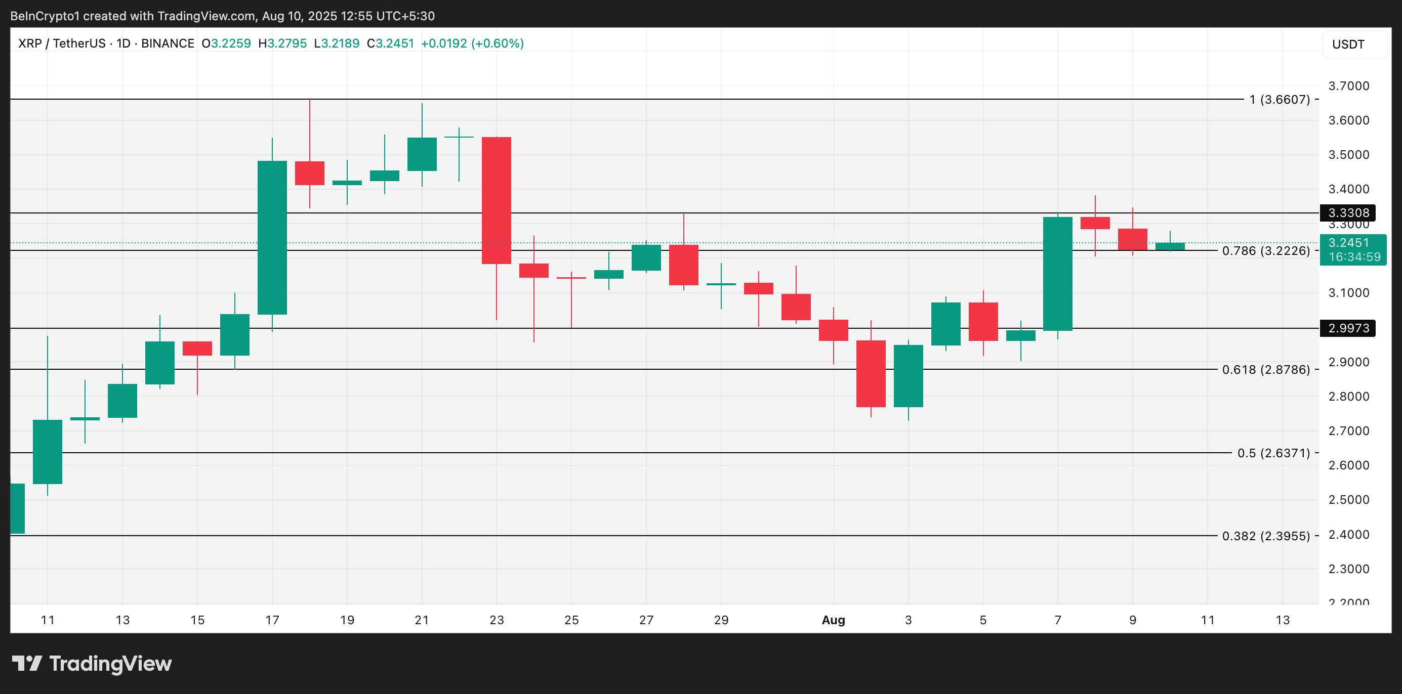 Dữ liệu từ biểu đồ một ngày của XRP/USD cho thấy altcoin này đã di chuyển trong một phạm vi hẹp trong ba phiên giao dịch gần đây. Kể từ thứ Sáu, XRP đã gặp kháng cự tại 3.30 USD và tìm thấy hỗ trợ tại 3.22 USD.