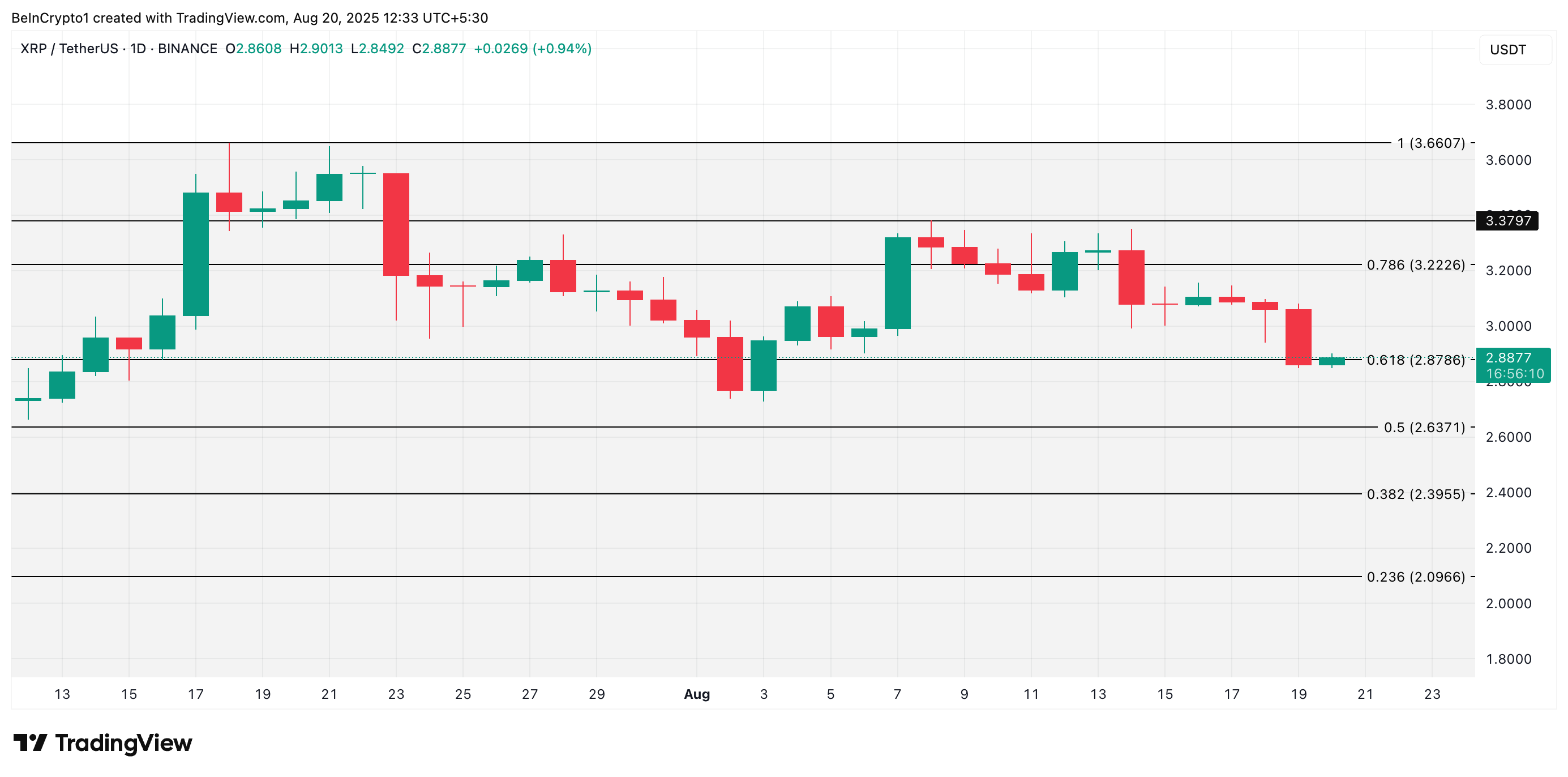 Tại thời điểm viết bài, XRP giao dịch ở mức 2.887 USD. Nếu các cược tăng giá tăng lên và tâm lý thị trường dần chuyển sang tích cực, token có thể đạt 3.222 USD.