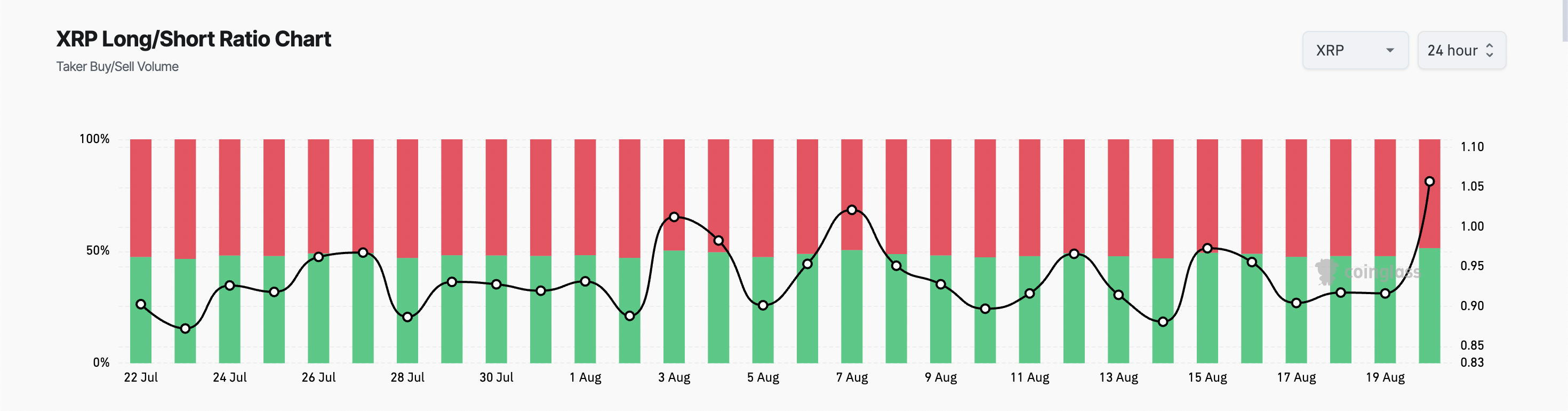 Theo CoinGlass, tỷ lệ này hiện đang ở mức cao nhất trong 30 ngày là 1.05, cho thấy có nhiều nhà giao dịch đặt vị thế long hơn là short.