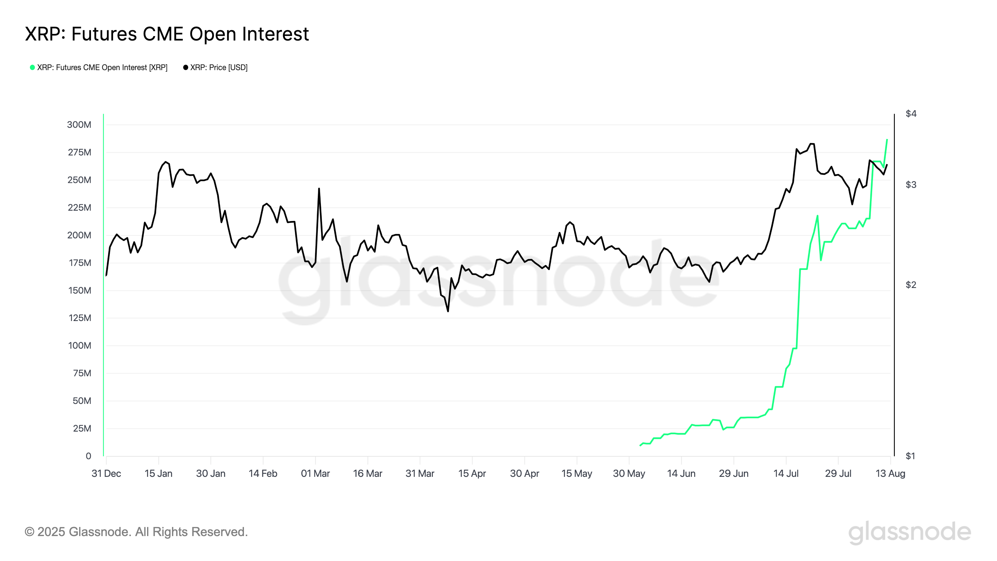 Lãi suất mở hợp đồng tương lai XRP trên CME. Nguồn: Glassnode