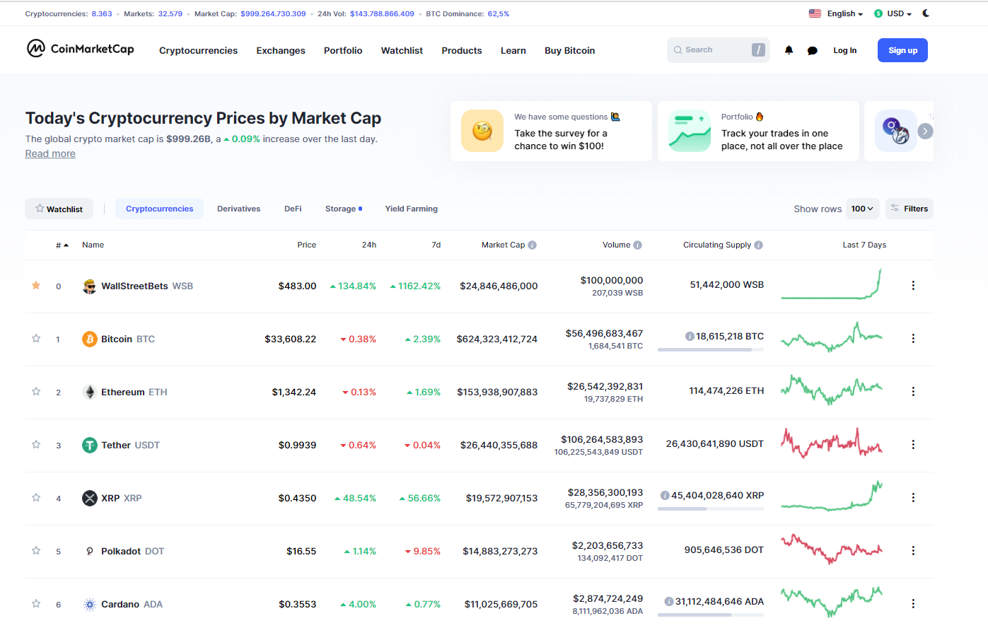 Kể từ ngày 29/01, cả thế giới Blockchain được một cơn chấn động khi một loại tiền điện tử lạ xuất hiện. Đáng nói, Altcoin mang tên WSB một phát nhảy lên vị trí đầu bản xếp hạng vốn hóa, vượt mặt Bitcoin. Tại thời điểm viết bài, giá WSB giao dịch tại mức 483 USD. Tuy nhiên đây chỉ là một cú troll từ Coinmarketcap vì “WallstreetBets” là cái tên nổi trội nhất đêm qua.