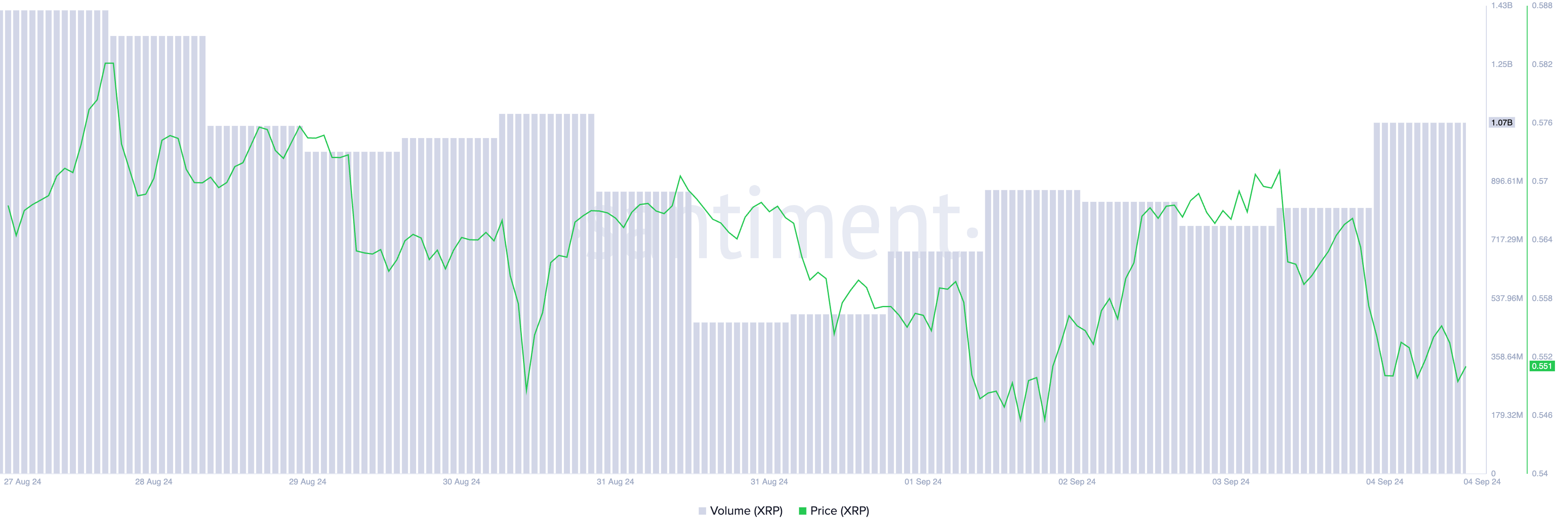 Trong 24 giờ qua, giá của Bitcoin đã giảm 4%, và XRP cũng giảm theo 3%. Mặc dù có sự sụt giảm này, khối lượng giao dịch của XRP đã tăng vọt 39%, tạo ra một sự phân kỳ tiêu cực. Sự phân kỳ này thường chỉ ra áp lực bán tăng lên, cho thấy XRP có thể sẽ tiếp tục giảm giá.