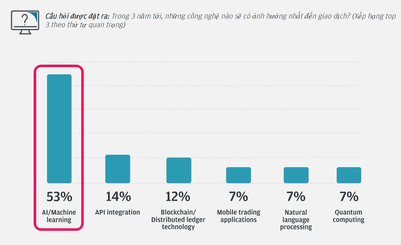 53% các nhà đầu tư tổ chức cho rằng AI/Machine Leaning sẽ là lĩnh vực công nghệ ảnh hưởng nhất đến xu hướng đầu tư trong 3 năm tới. Xếp thứ 2 (14%) là các API tích hợp giữa các công nghệ khác nhau (ví dụ: API của AI tích hợp vào blockchain). Có thể nói, sự thành công của ChatGPT gần đây đã khẳng định xu hướng này.