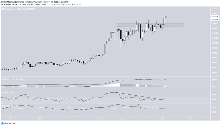 Trước đó ETH đã đạt mức giá cao nhất mọi thời đại vào ngày 26 tháng 1. Nhưng sau đó nó đã bị đình trệ một chút trước khi tiếp tục chuyển động tăng. Và cho đến nay, ETH đã đạt mức cao mới là $1,571.