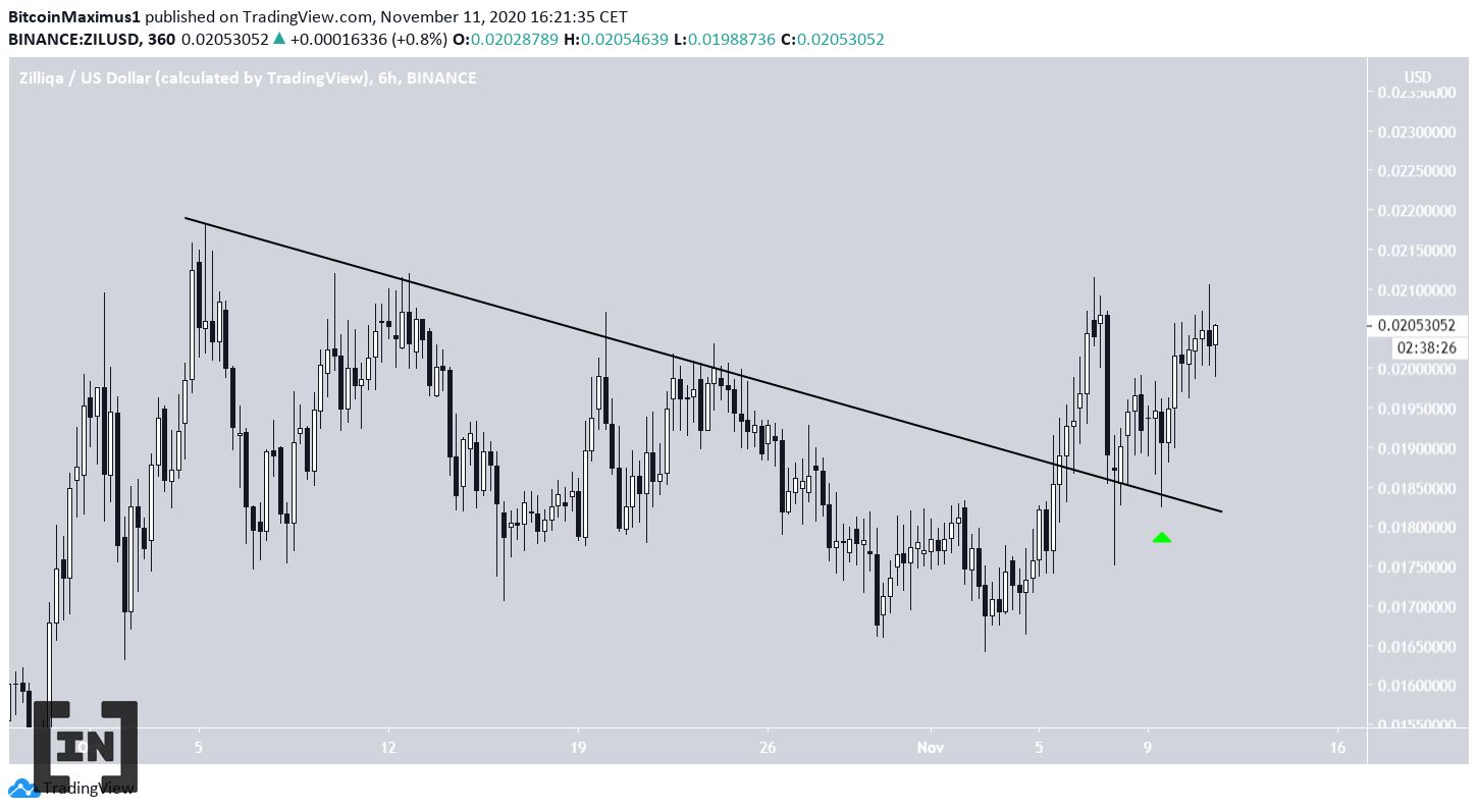 Giá Zilliqa (ZIL) có tín hiệu dịch chuyển lên trên từ ngày 21 tháng 9. Nó đã phá vỡ khỏi đường kháng cự giảm dần ngắn hạn, và tăng trưởng mạnh sau đó.