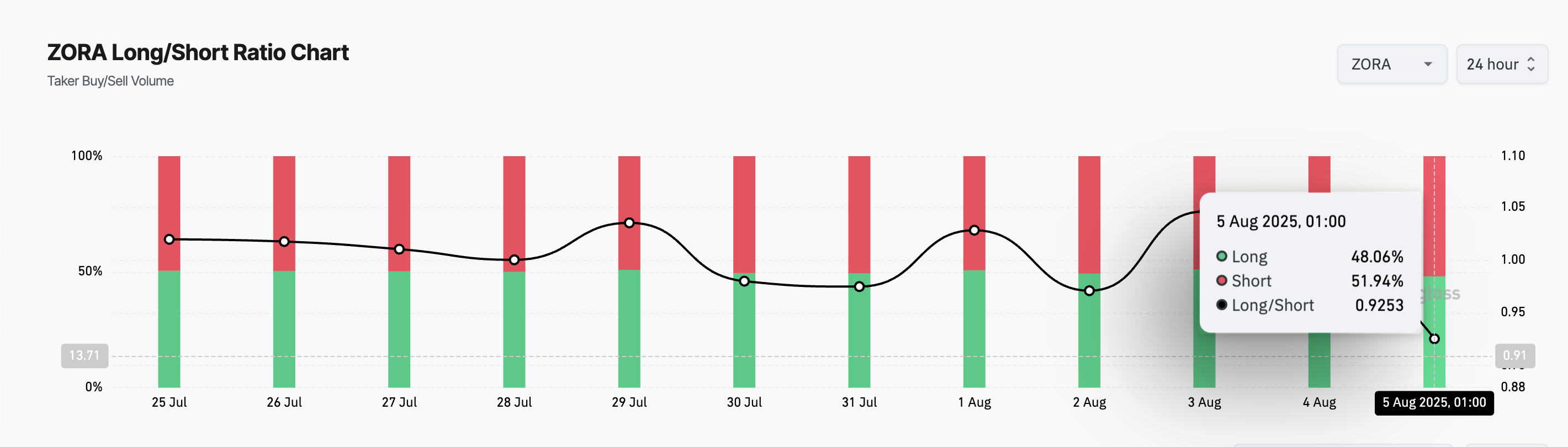 Do đó, tỷ lệ long/short hiện tại của ZORA cho thấy rằng hầu hết các nhà giao dịch đang ngày càng chuẩn bị cho một sự điều chỉnh hơn là một đợt tăng lên mức cao mới.