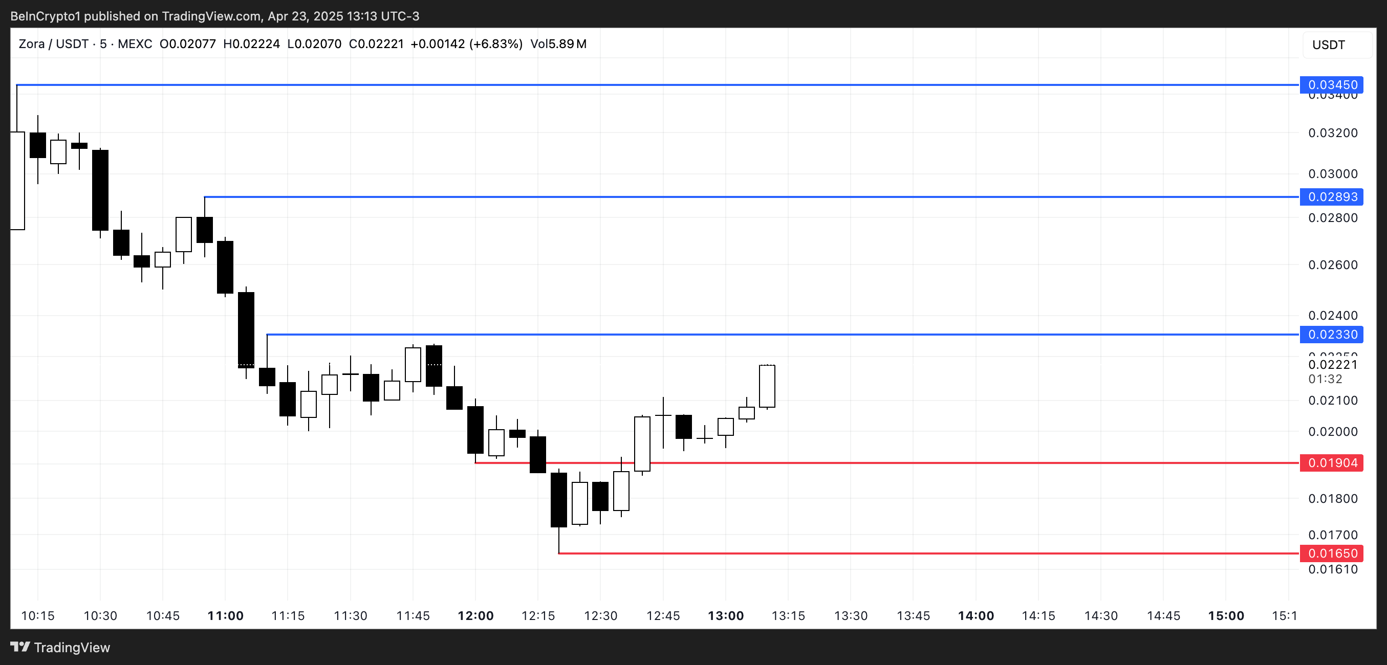 Tuy nhiên, sự phục hồi vẫn chưa chắc chắn. Nếu ZORA không giữ được các mức hiện tại và động lực tăng giá mờ dần, nó có thể thử nghiệm lại hỗ trợ tại 0.019 USD.